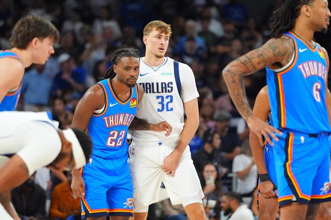在欧文缺席的情况下,独行侠迎来与雷霆队的季前赛首秀争夺,后者作为卫冕冠军已经在首场季前赛大胜黄蜂拿下开门红,本场比赛亚历山大等首发5人组持续缺席。