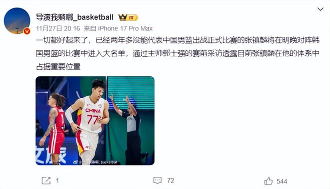实际上张镇麟已经两年多没有代表中国男篮出战正式比赛,他这次重返中国男篮大名单就是憋着一口气,只可惜最后未能成为那个英雄人物。