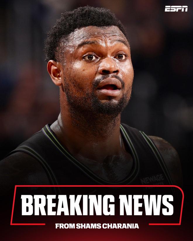 Shams:锡安因右腿内收肌受伤将缺席更长时间,三周后复查